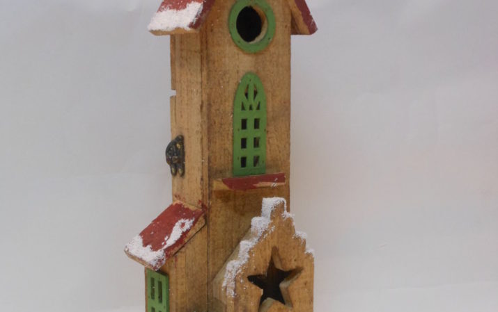 Graziosa chiesetta in legno illuminata con luci led a batteria. Riproduzioni delle chiese del nord Europa decorata a mano. (Disponibili anche altri modelli e altre dimensioni)